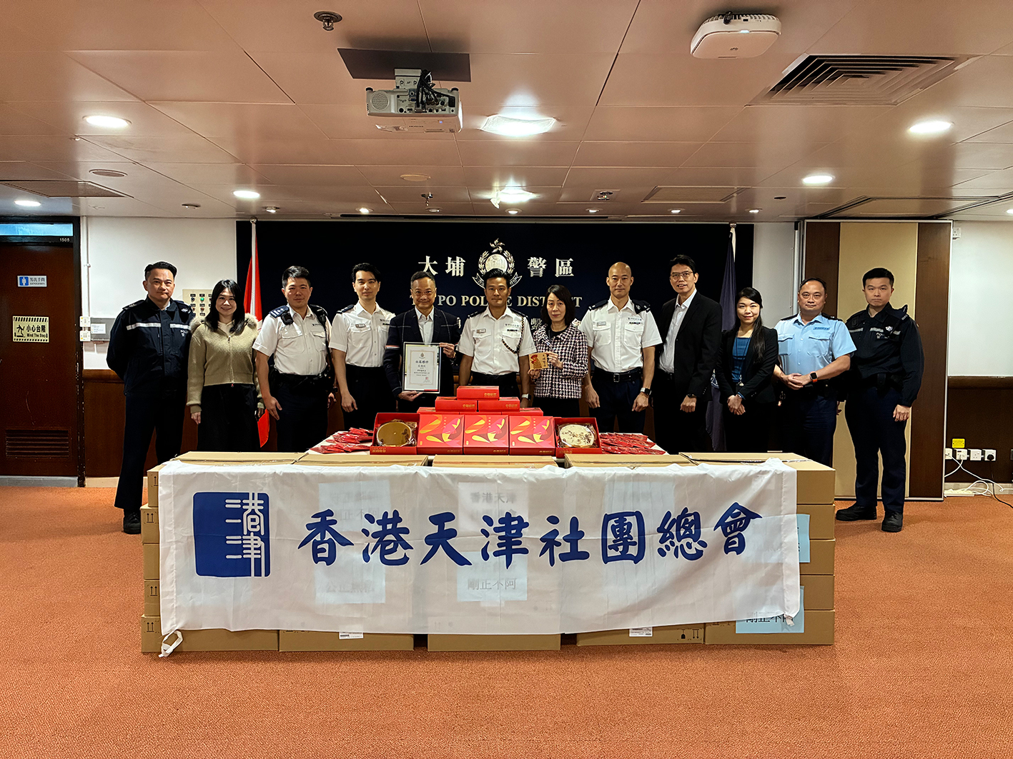 2月4日,公司董事吴来盛先生代表香港天津社团总会分别前往香港警署大埔警区及港岛总区总部送去年糕、萝卜糕等新春慰问品,支持、慰问警队服务小区、大埔火灾救援、惩治犯罪的英勇行为和奉献精神。