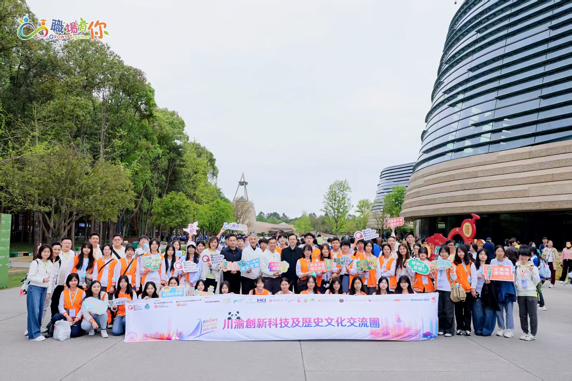 为深化川渝港三地青年交流互动,增进香港青年对成渝地区双城经济圈建设、前沿科技发展及巴蜀文化底蕴的全面认识,2026 年3月29日,「GROWS Together 职场有你」川渝创新科技及历史文化交流团在成都正式启动。41名香港优秀青少年学子开启七天六晚深度交流之旅,走进成都、重庆两座核心城市,在科创探访、文化寻根、高校交流、生态体验中直观感受内地发展脉搏,厚植国情认知与家国情怀。